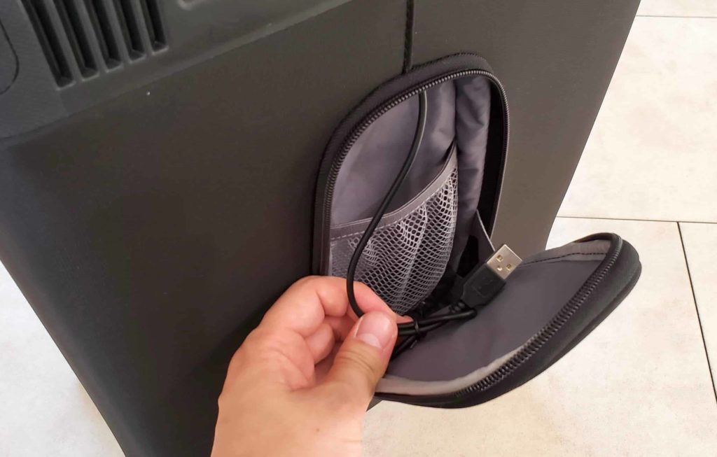 けどね、このアントラータイタスは充電用USBが内臓してるため、スーツケース片手に一休みしている時にサッと充電できるんですよ。